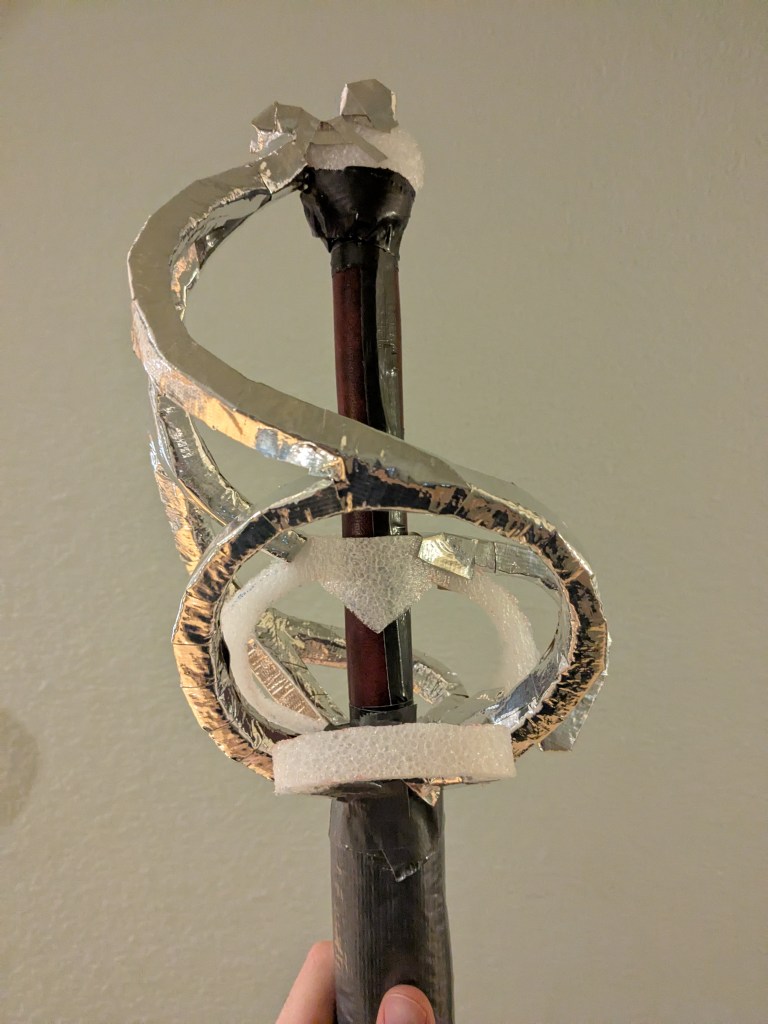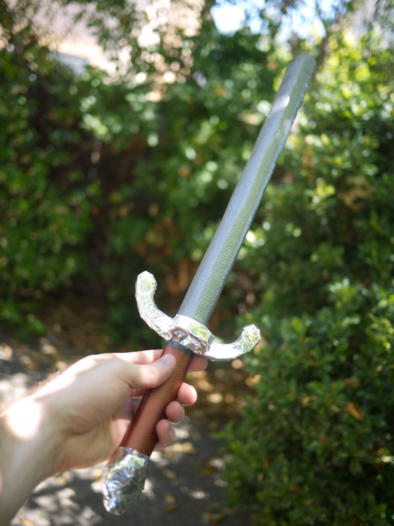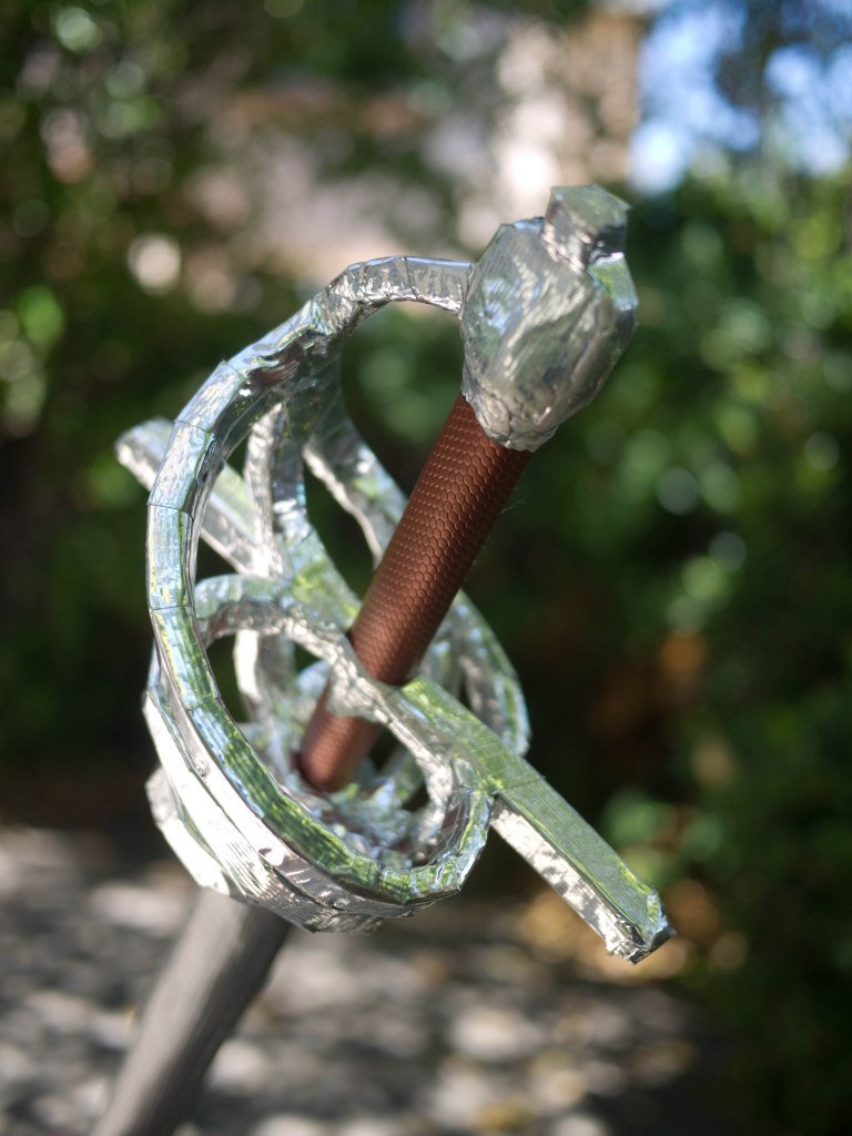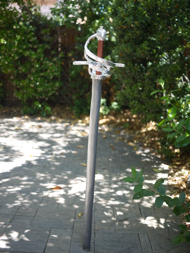 While I’m at it, here’s a picture of the longsword I also made around the same time with the same color palette as two of the rapiers.