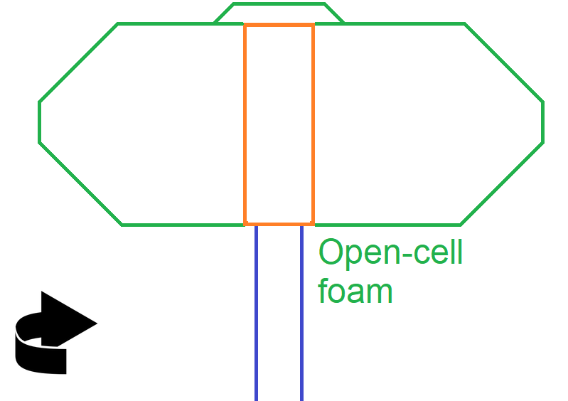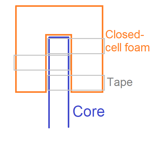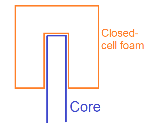 With this approach, you build a solid base of closed-cell foam that is solidly affixed to the core (fellow builder Tyson referred to it as a “lollipop” upon hearing about it, which I think communicates the structure pretty well), and then build out from that using the much softer and lighter open-cell foam. There are some additional steps not illustrated for brevity, but that is the basic version.